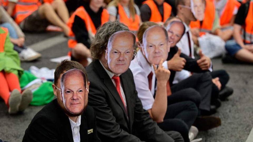 À Berlin en Allemagne, des manifestants pour le climat ont bloqué une route en portant des masques représentant des politiciens allemands. Le groupe Last Generation, qui veut dire «dernière génération» en français, milite pour que le gouvernement allemand pose plus de gestes concrets pour lutter contre les gaz à effet de serre.