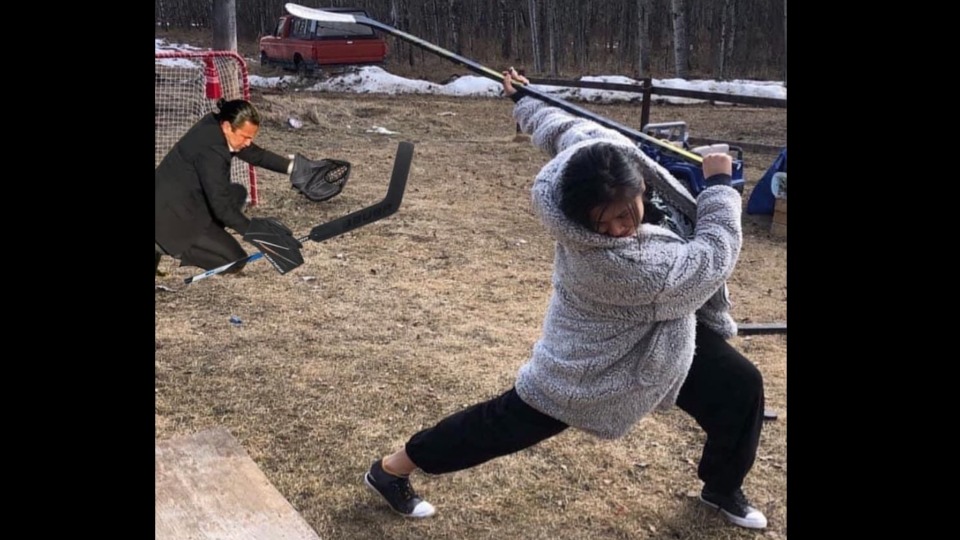 «Les Manitobains sont des gens qui aiment s'entraider. Quand j'ai vu que mon amie avait un pneu crevé, j'ai fait ce que tout Manitobain ferait: je l'ai aidée! J'ai un peu sali mon habit, mais j'ai fait sourire mon amie. La prochaine fois que tu verras un ami dans le besoin, fais comme les Manitobains et viens lui en aide»!