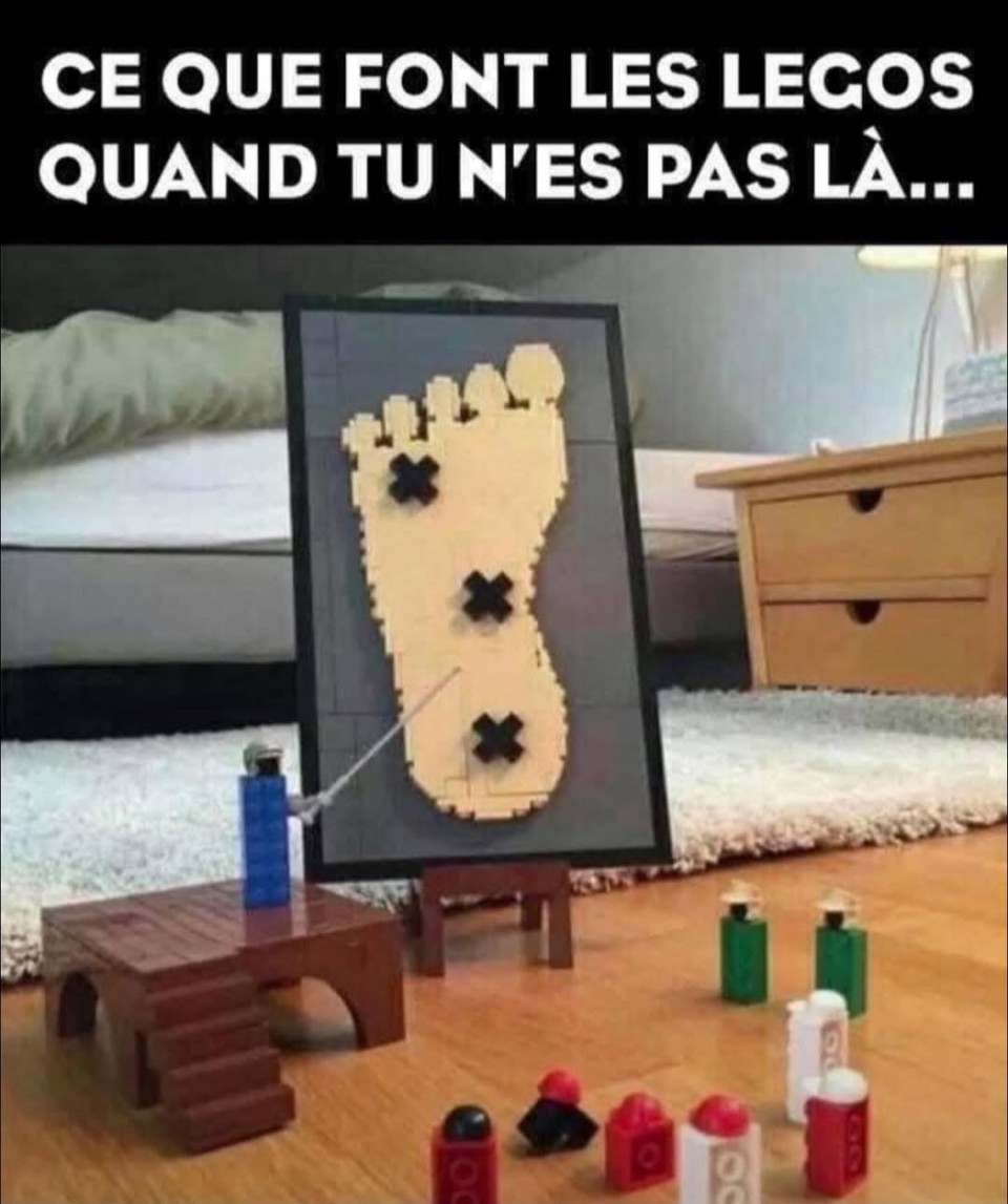 Ce mème m’a fait pensé à un drôle de record qui a été établi au début de l’année. Une mère a couru 100 mètres sur des LEGO! Elle a complété son sprint en 24,75 secondes! Est-ce que tu serais capable de courir sur des LEGO, toi? 😱