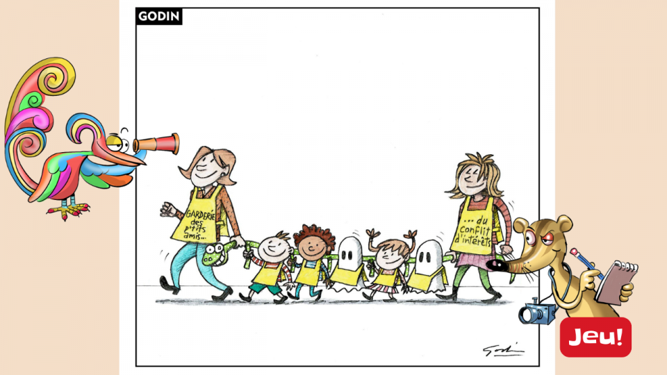 Trouve les 5 différences entre les deux caricatures de Godin.