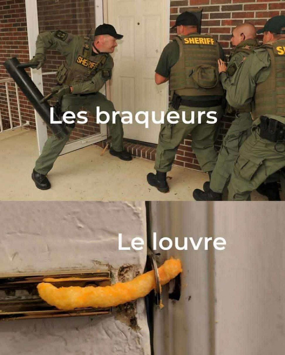 Ce qui a beaucoup fait réagir les internautes, c’est la rapidité du cambriolage. Les voleurs ont réussi leur coup en seulement 7 minutes. Beaucoup se sont demandés comment, en si peu de temps, des cambrioleurs ont réussi à s’infiltrer dans le plus grand musée du monde. La sécurité n’était clairement pas au top… et les mèmes n’ont pas tardé à s’en moquer!