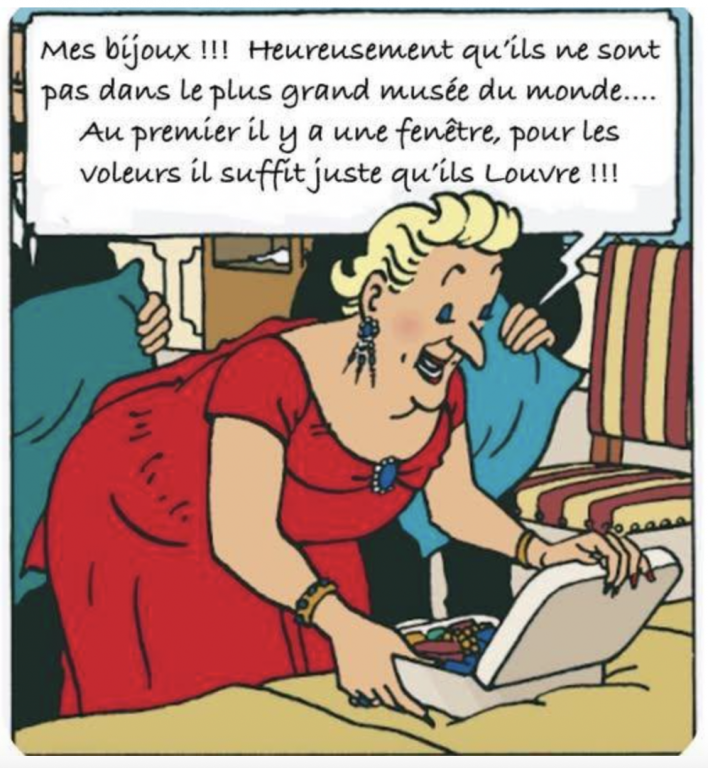 Tu en as sûrement entendu parler: le musée du Louvre à Paris s’est fait cambrioler dimanche dernier! . Résultat: 8 bijoux précieux volés. Mince consolation: une couronne échappée par les voleurs a été retrouvée dans la rue près du musée. Caroline t’expliquait toute l’histoire ici. Ce cambriolage spectaculaire a fait beaucoup de bruit à l’international. Et comme toujours, internet n’a pas perdu de temps pour s’amuser! Voici mes mèmes préférés sur le vol du Louvre!