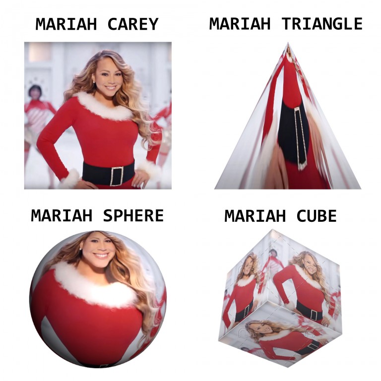 Ici, on fait un jeu de mots avec le nom de famille de Mariah Carey ( qui chante la fameuse chanson All I Want For Christmas Is You), et les formes géométriques! 🤭