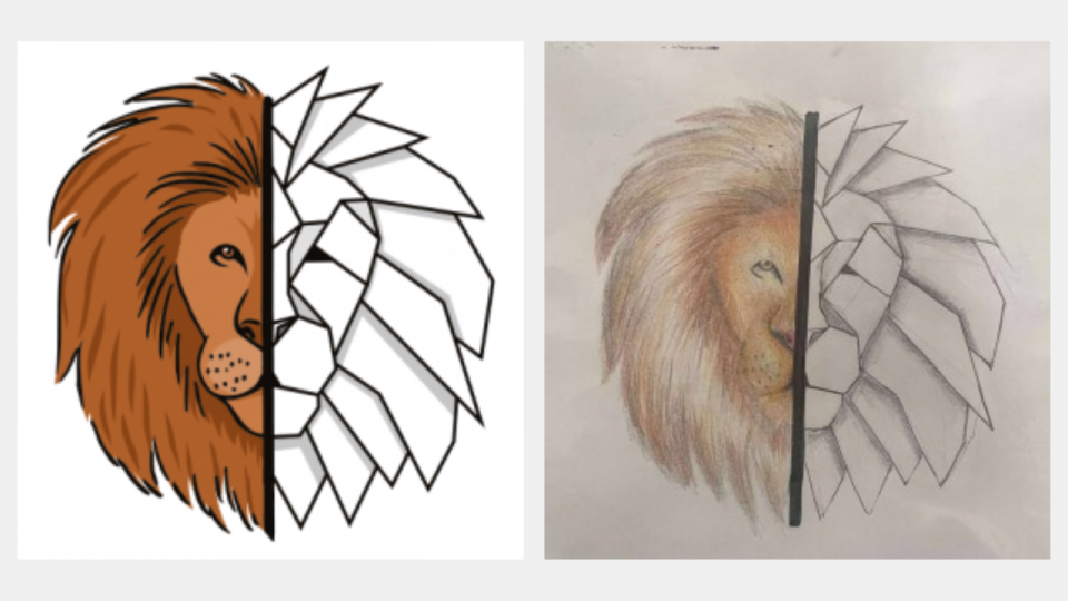C’est à ce moment que madame Cathy a lancé un concours pour trouver un nouveau logo pour l’école. L’ancien symbole était un lion entier, de la tête aux pattes.