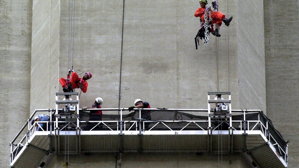 À gauche, sur la photo, c’est Steven Guilbeault! Le gros mur de béton derrière lui, c’est la tour du CN.