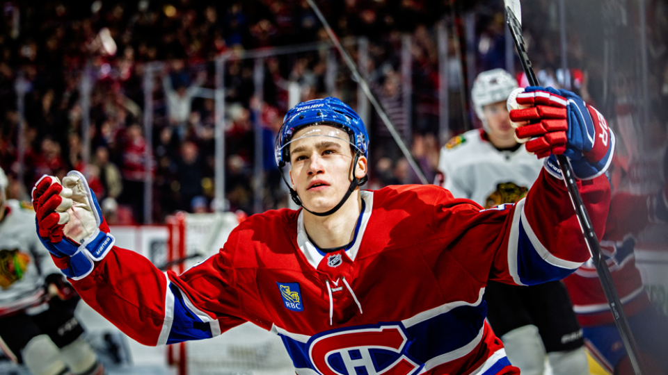 Le Canadien de Montréal (et ses fans!) mise beaucoup sur Ivan Demidov. À son arrivée dans l’équipe en avril, le Russe de 19 ans a été surnommé «Demigod», ce qui veut dire «demi-dieu» en anglais. Ça montre à quel point il est talentueux et suscite l’espoir des partisans! Dès son tout premier match dans l’uniforme du Tricolore, le 14 avril dernier, il a marqué un but. Cette photo a été prise juste au moment où il s’est tourné vers la foule pour célébrer ce point important. On espère que le jeune «demi-dieu» portera chance au Canadien en 2026!