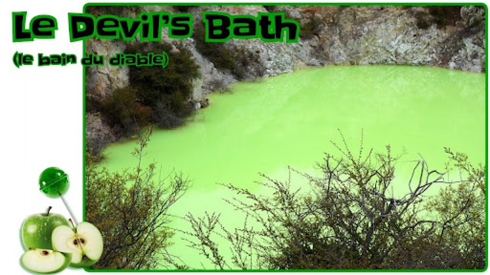 Couleur: La couleur vert pomme de ce bassin chauffé par la chaleur de la Terre est causée par des minéraux (soufre et sels de fer). Dans la région de Wai-O-Tapu, qui signifie «eaux sacrées» dans la langue autochtone maori, il existe plusieurs sources chaudes et bassins colorés comme celui-ci.