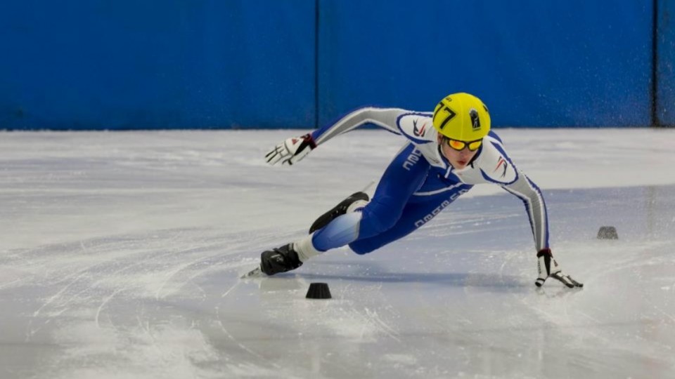 Ici, tu peux voir le jeune David dans ses débuts en patinage de vitesse