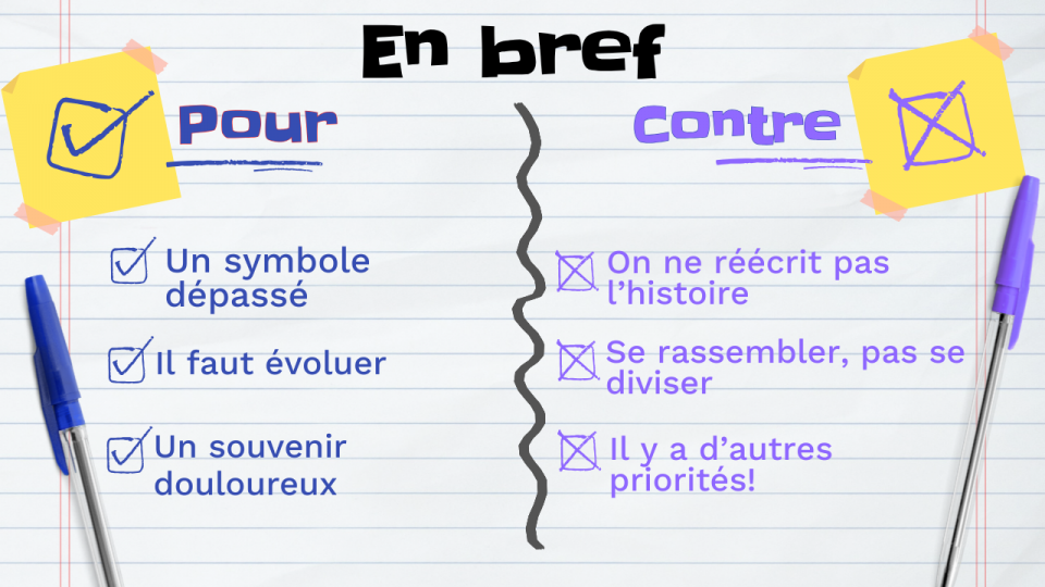 Le Québec a son drapeau bleu et blanc avec ses fleurs de lys. Mais savais-tu que la province a aussi des armoiries? Il s’agit d’une image officielle qui représente l’histoire et les valeurs d’un pays, d’un territoire ou d’une école, par exemple. Et celles du Québec seront bientôt modifiées. La couronne, qui représente la royauté britannique, sera retirée. Pour le gouvernement du Québec, c’est un moyen de montrer que le Québec ne dépend pas du roi d’Angleterre. Mais est-ce une raison de modifier un symbole? Regardons ensemble les POUR et les CONTRE.