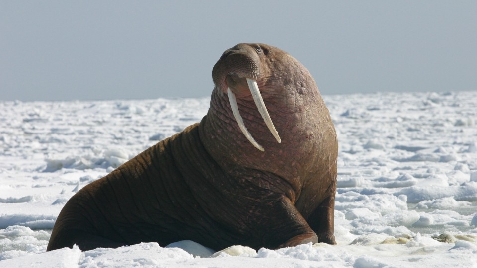 Les morses font partie du menu des ours polaires, mais ils savent bien se défendre avec leurs grandes dents!
