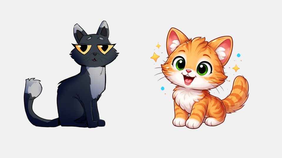 Voici, par exemple, un chat dessiné par un ami des As (à gauche) et un généré par l'IA (à droite) 👇