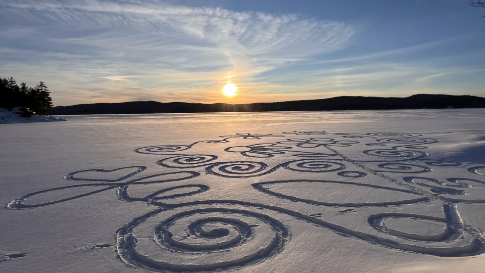 Depuis, chaque hiver, l’artiste crée de nouvelles œuvres éphémères sur son lac. Elle ne prépare jamais de croquis ou de plans précis. «Je me laisse simplement aller, je me guide avec mon cœur et mon intuition », explique-t-elle.