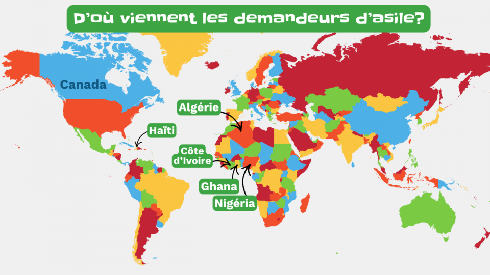 En ce moment, au Québec, ils viennent surtout d’Haïti, du Nigeria, du Ghana, de l'Algérie et de la Guinée. Mais il y en a vraiment de partout. Si un pays entre en guerre ou se retrouve sous un gouvernement très autoritaire, il se peut qu’il y ait plus de gens qui le fuient pour venir s'installer au Canada.