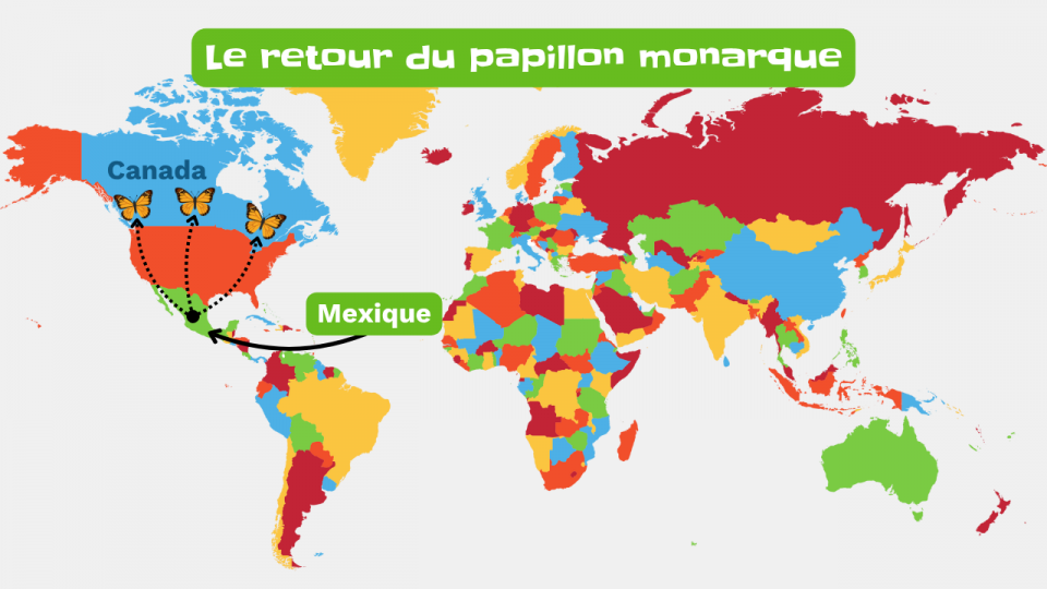 La migration du papillon monarque est l'une des plus impressionnantes du monde animal. Imagine: chaque année, à l’automne, ce petit insecte quitte le Canada et parcourt jusqu’à 5000 kilomètres pour se rendre au Mexique ou au sud des États-Unis. 😮💨 Il passe l’hiver au chaud, puis, au printemps, il refait le chemin inverse, et vole à nouveau 5000 kilomètres pour profiter de l’été dans nos jardins! 😎