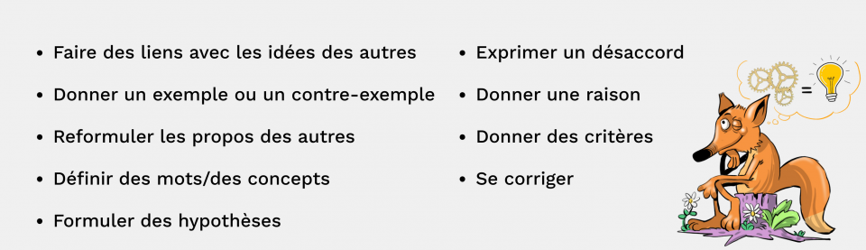 Dans un atelier philo, on exprime ce que l’on pense, mais on le justifie aussi. S’il y a plusieurs réponses possibles à une question philosophique, les arguments ne se valent pas tous. Il est donc possible de les tester et de les évaluer à l’aide des habiletés de pensée. Lors de la pratique du dialogue, les élèves devront utiliser des moyens pour appuyer leurs idées.