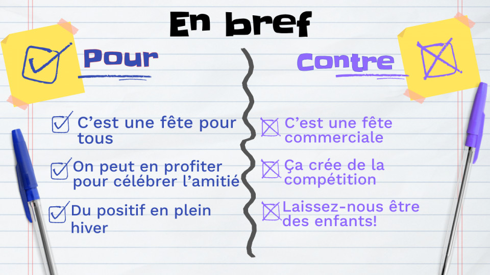 Samedi le 14 février, c’est la Saint-Valentin, la fête de l’amoooouuur! 💝💘🥰 Coeurs, cupidons, roses: partout où on va, le rouge est à l’honneur. Mais cette fête est loin de plaire à tout le monde. Certains la détestent carrément! On regarde ça ensemble? Voici les POUR et les CONTRE la Saint-Valentin.