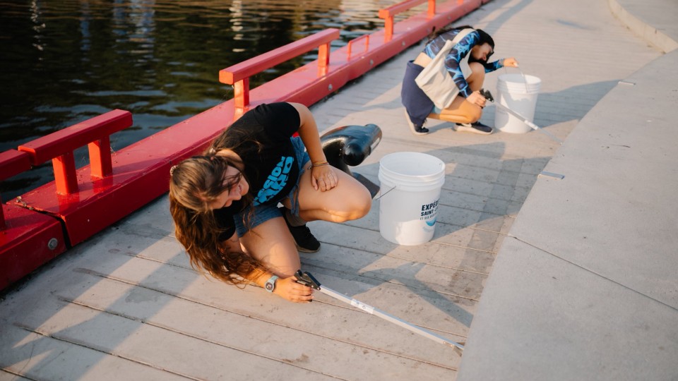 Anaïs: J’étudie les sciences de la nature au cégep. Dans mon programme, il y a plusieurs activités scientifiques. J’ai choisi l’Expédition Saint-Laurent, parce que protéger la nature, c’est vraiment important pour moi. L’idée de voyager à travers le Québec pour nettoyer les cours d’eau me motivait aussi beaucoup. Alors j’ai envoyé ma candidature et j’ai été choisie!