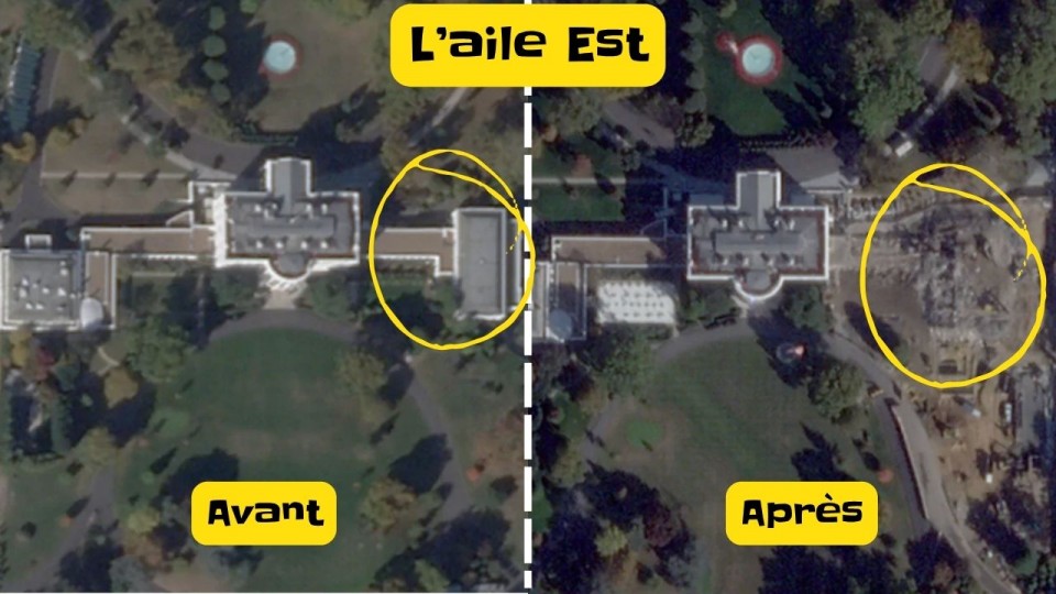 Mais vendredi matin, il ne restait plus rien de l’aile Est de la Maison-Blanche. C’est la partie où se trouve, entre autres, le bureau de la Première dame (l’épouse du président) et de son personnel.