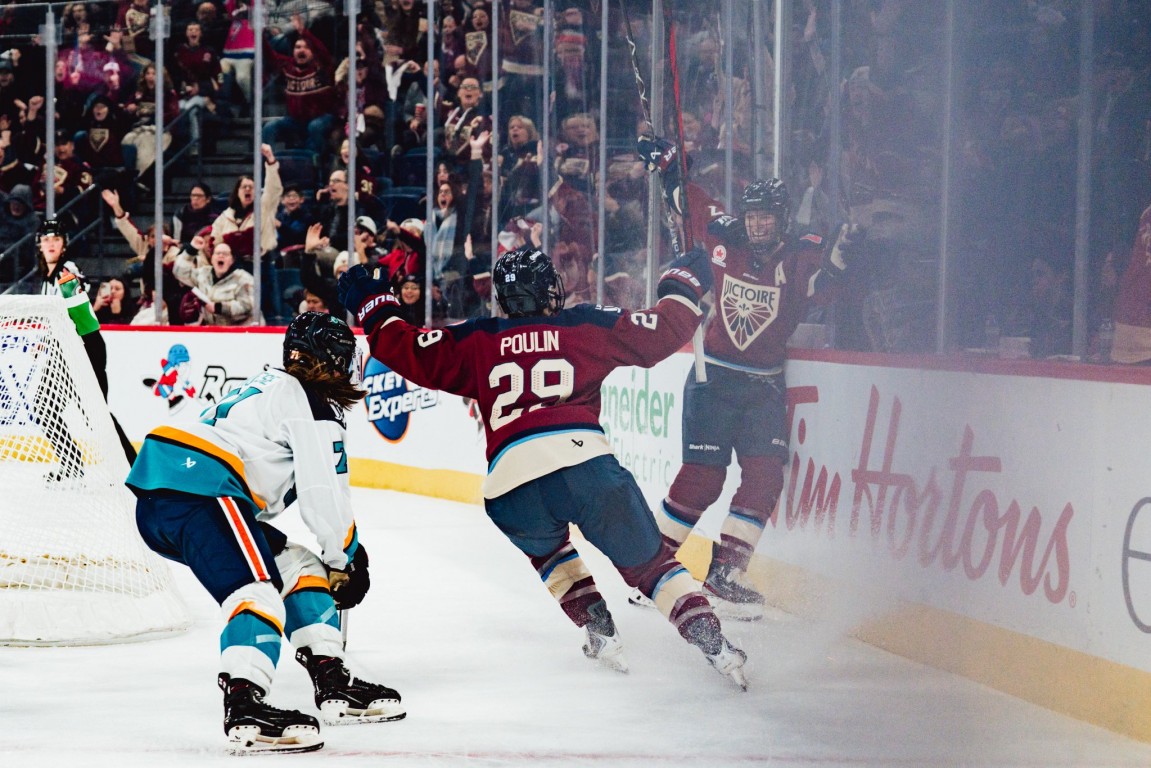 La Victoire de Montréal l’a emporté 4 à 0 contre les Sirens de New York hier soir. Marie-Philip Poulin est devenue la première joueuse à atteindre les 50 points dans la Ligue professionnelle de hockey féminin (LPHF). Elle a marqué son premier but de la saison sur une passe de sa femme, Laura Stacey. Oui, oui! Les deux vedettes de la Victoire sont mariées et jouent dans la même équipe. Ça, c’est le rêve. Les Montréalaises ont été parfaites dans leur premier match à domicile. Elles se reprennent après une défaite lors du premier match de la saison contre le Fleet de Boston.