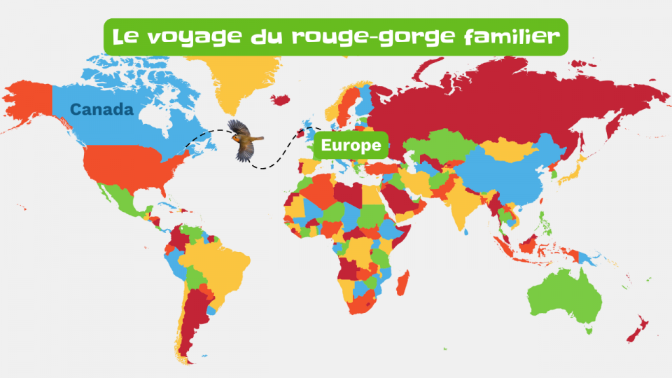 Le rouge-gorge familier vit normalement en Europe, notamment dans le sud de la France. J’ai déjà entendu parler de pigeons voyageurs, mais des rouges-gorges voyageurs? Jamais! Alors, comment a-t-il pu se retrouver à Montréal, à au moins 6000 kilomètres de chez lui?