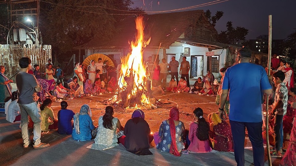 La nuit de la veille de Holi, il y a le Holika Dahan. C'est une cérémonie rituelle de feu de joie qui symbolise le triomphe du bien contre le mal. Les gens font des prières autour du feu pour remercier leur dieu et attirer des choses positives dans leur vie.