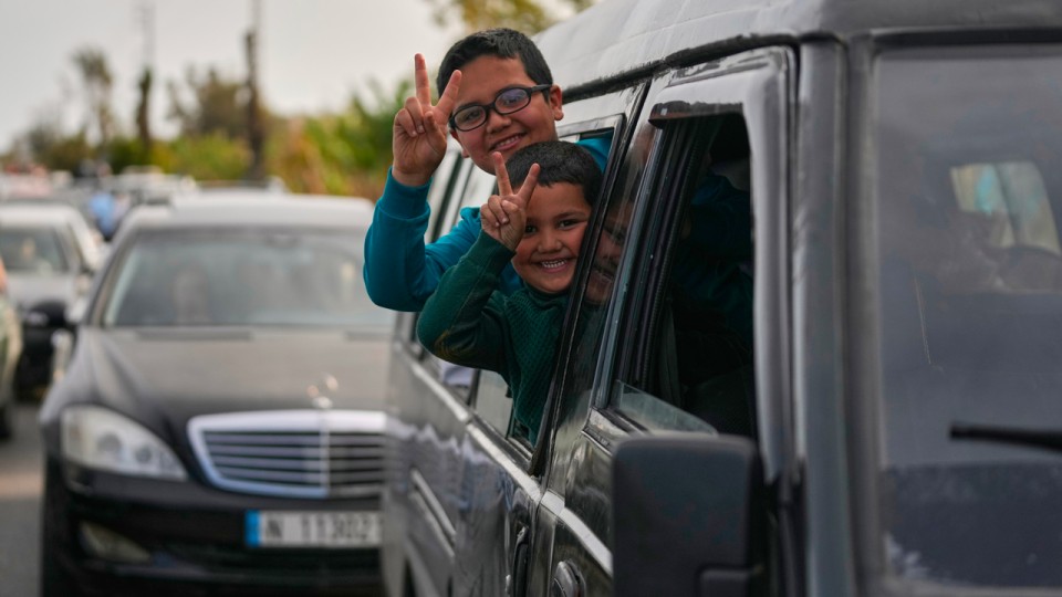 Des familles libanaises retournent à la maison dans le sud du Liban.