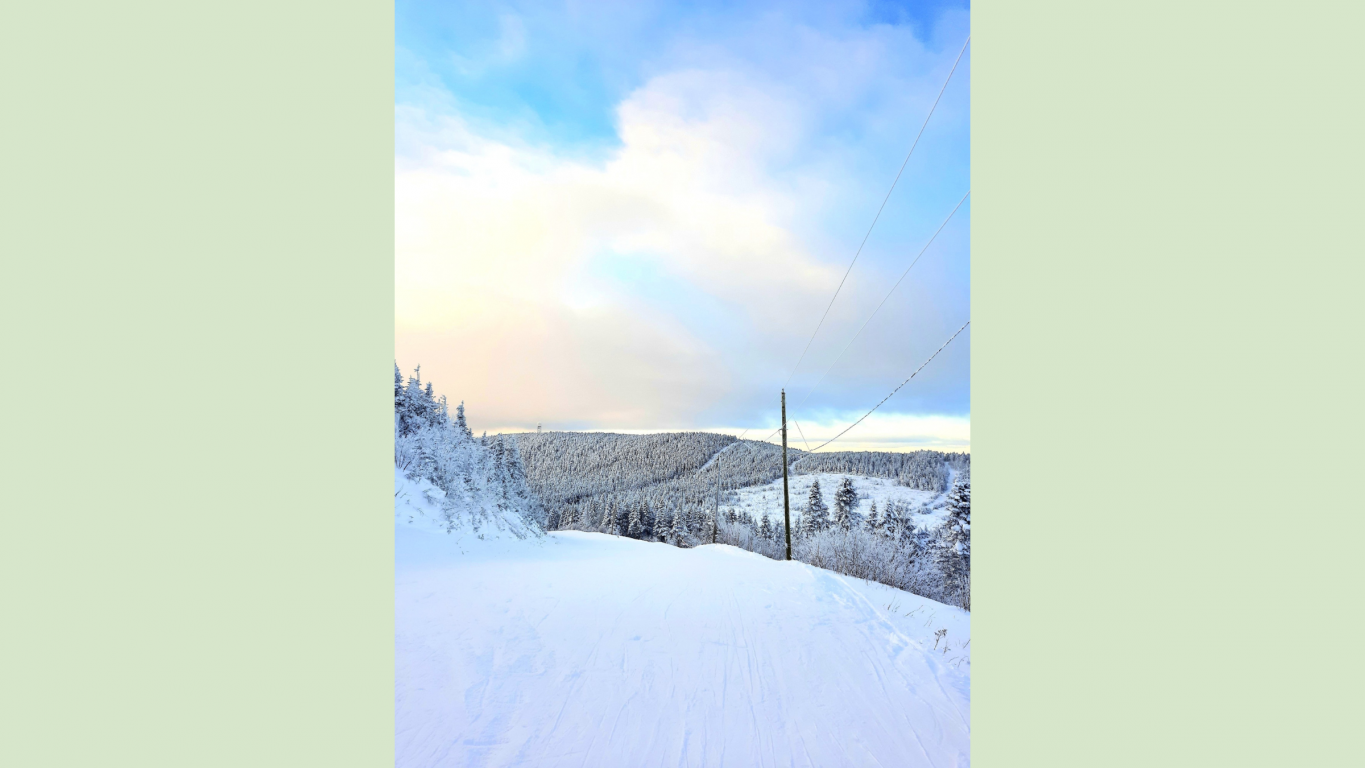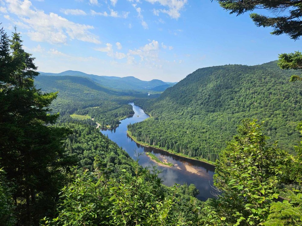 2 - Cette photo a été prise en juin par Love les chiens 🩵, lors d’une randonnée au parc national de la Jacques-Cartier, près de la ville de Québec. On y voit la rivière du haut d’une montagne!