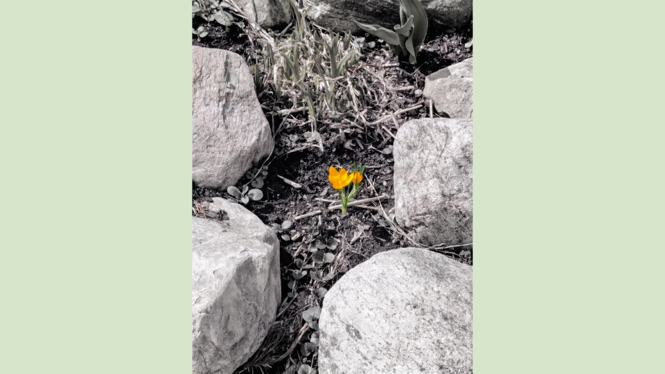 11 - Cette photo a été prise par Myla, à Montréal! Cette année, elle a trouvé l'hiver très long. Il y a quelques jours, alors qu’elle se promenait, elle a vu cette belle fleur jaune sortir avant les autres. Elle a hâte que le printemps arrive enfin… et je dois avouer que moi aussi! Pour ajouter encore plus de couleurs au temps gris des derniers jours, Myla a traité son image pour faire ressortir celles de la fleur!